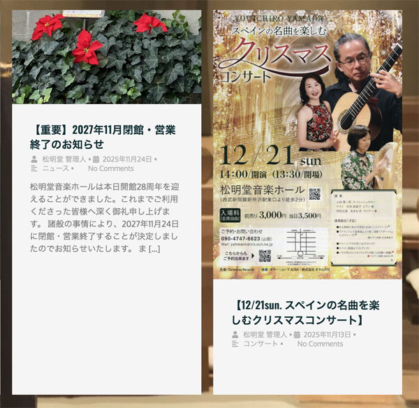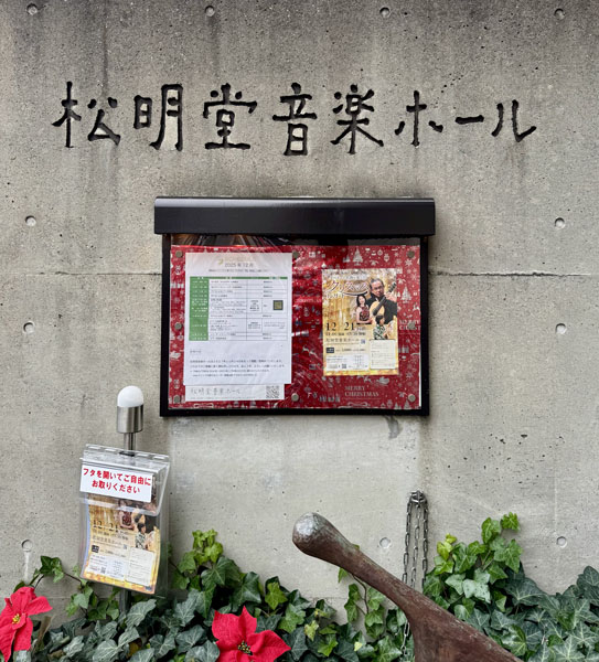 コンサート前に、今回の会場の「松明堂音楽ホール」のHPに二年後に閉鎖・・と載っていて驚き