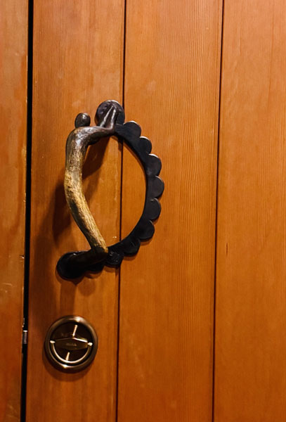 (ホール入り口のドア)ドアのドアの引き手の部分が両面で違っていたり